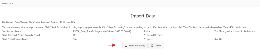 The message The file is good and ready to be imported will appear. Click on START PROCESSING.