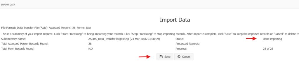 When the forms have imported, the Done importing message will appear. Click Save.