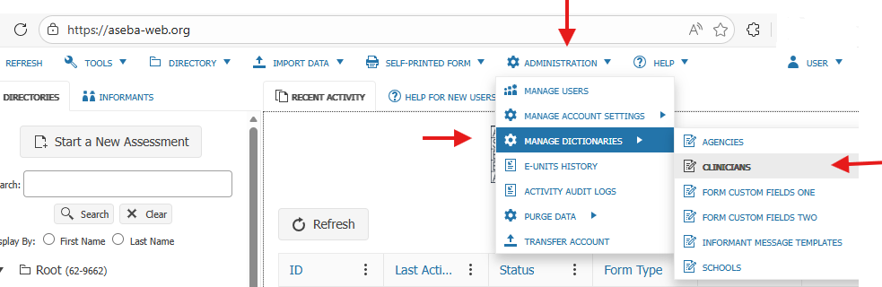 How to Add and Disable Clinicians in the Drop-down list in ASEBA-Web, ASEBA-PC, ASEBA-Network (Administrators Only)