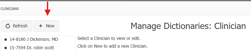 Select New (clinicians will show in the left column once created).