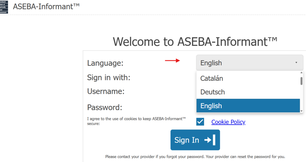 The Informant will see the screen below, and can choose their language from the drop-down list: