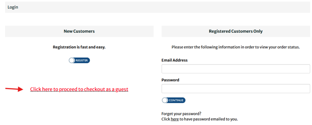 Please follow these directions to order without registering or logging into your store account.