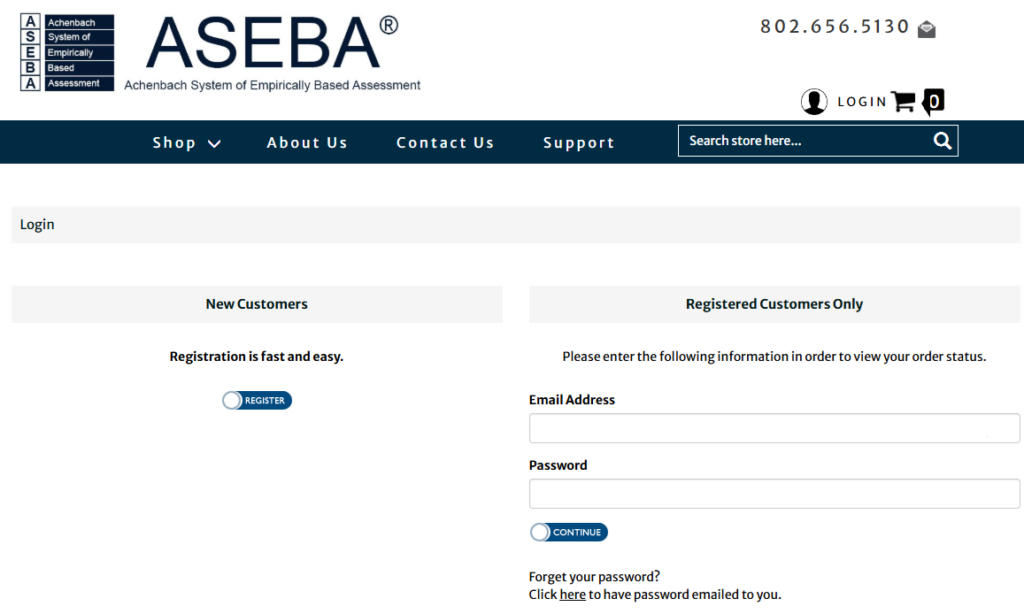 No. The username and password for the Aseba store is not the same as your username and password for the Aseba-Web behavioral scoring website. The store is Aseba.org or store.aseba.org and the scoring site is Aseba-Web.org or Aseba-web.eu.