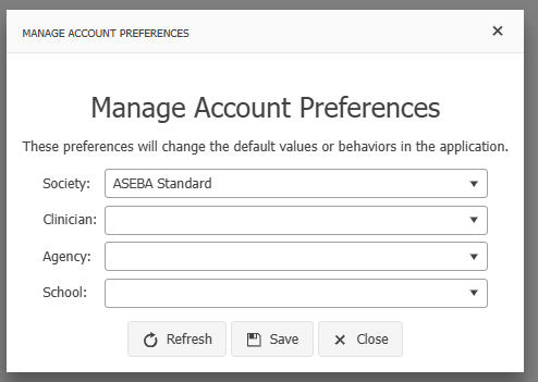 Our first set of preferences available are the ability to set default values for the society, clinician, agency and school dictionaries: