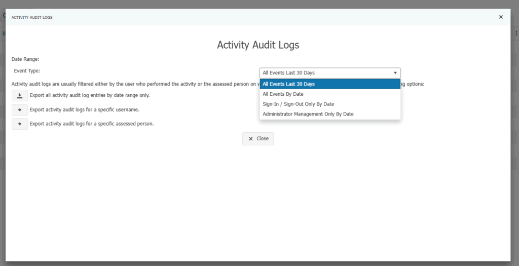 Activity audit logging in ASEBA-Web™ has been expanded significantly. Previously, logging focused on viewing or changing data in the application. Now, many navigation events are being logged to better show how the user is interacting with the application while signed in.